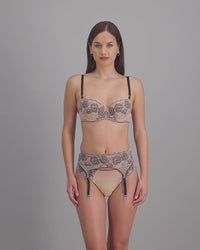 Bendon Everlasting Love Garter Belt in Cameo Rose/Black is a striking combination of floral and fishnet lace in a beautiful suspender that can be perfectly overlayed with the brazilian brief.